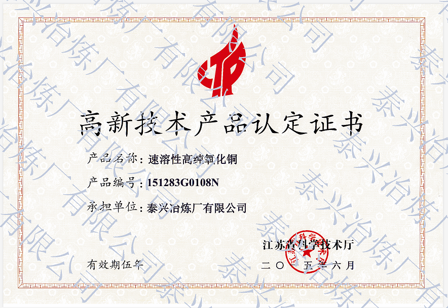 氧化亞銅生產歷史悠久,技術和規模在全 國均處于領先地位